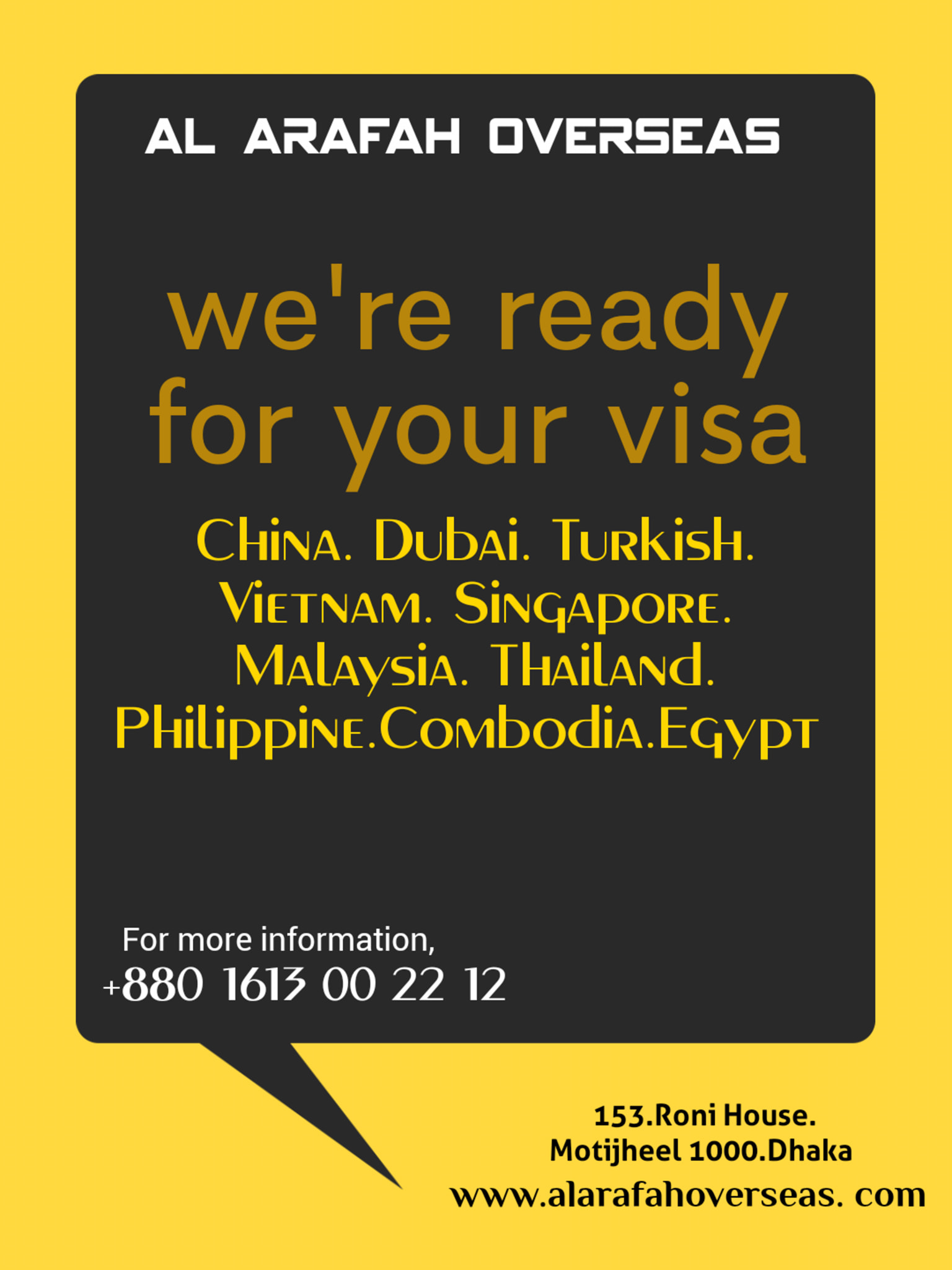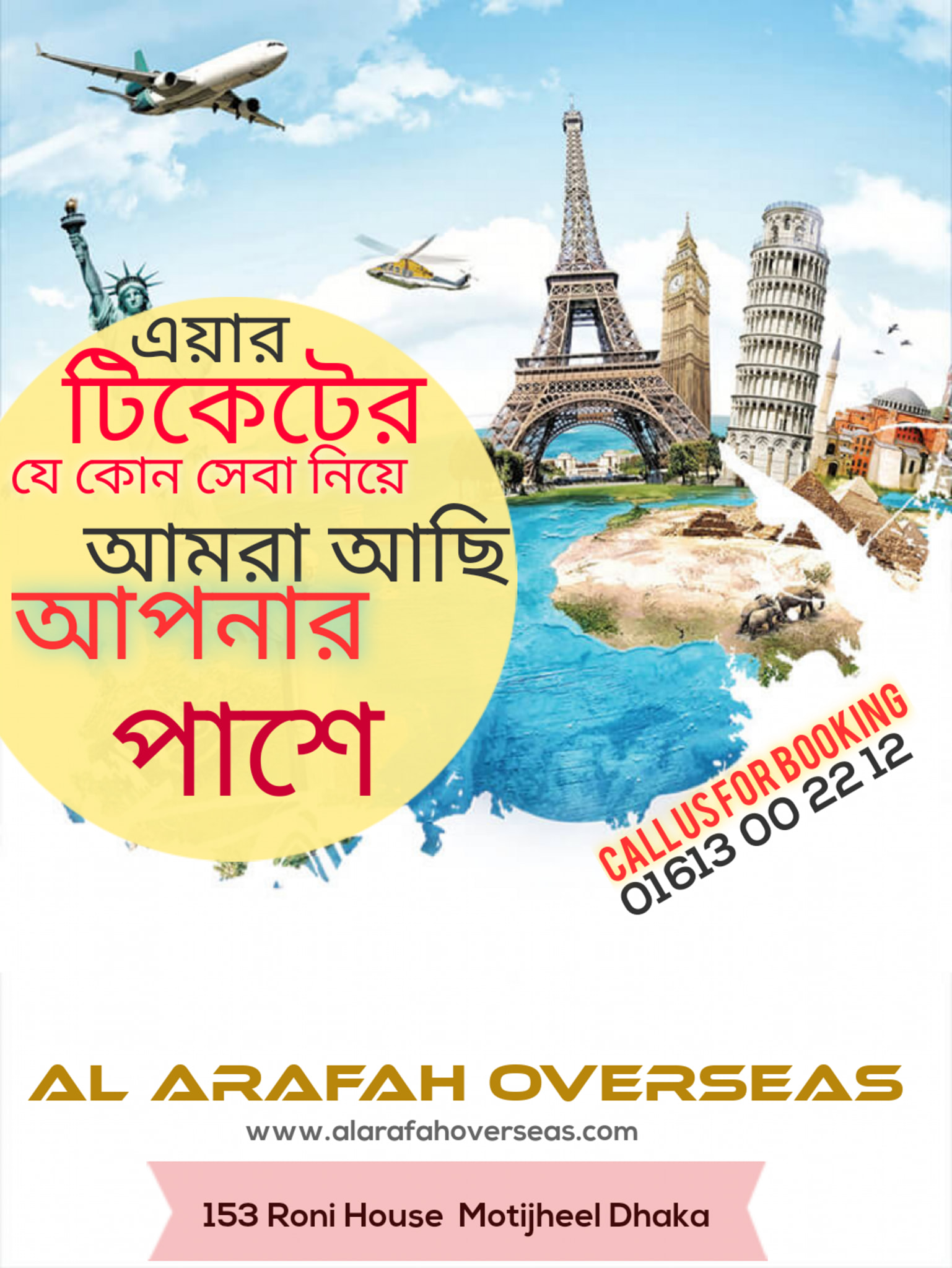 Al Arafah Overseas is a Hajj-Umrah, Air Ticketing, Visa Processing Company. It is located on Toyenbee Circular Road, Dhaka. Tickets may be bought from here for a reasonable price. It is a well-known tour company in the Motijheel region. Their customer support is excellent. Here, you may get tickets for several international destinations.