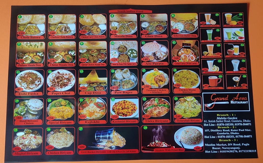 Grand Area Restaurant is a good restaurant that serves Indian, Chinese, and Fast food. The menu of the restaurant consists of a good number of dishes. The size of the restaurant is not so big but well-decorated. The restaurant is situated in Satish Sarkar road where you can travel easily.